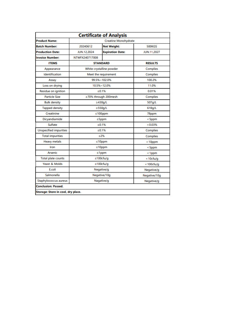 Contenido: 300g de Creatina Monohidratada Micronizada.